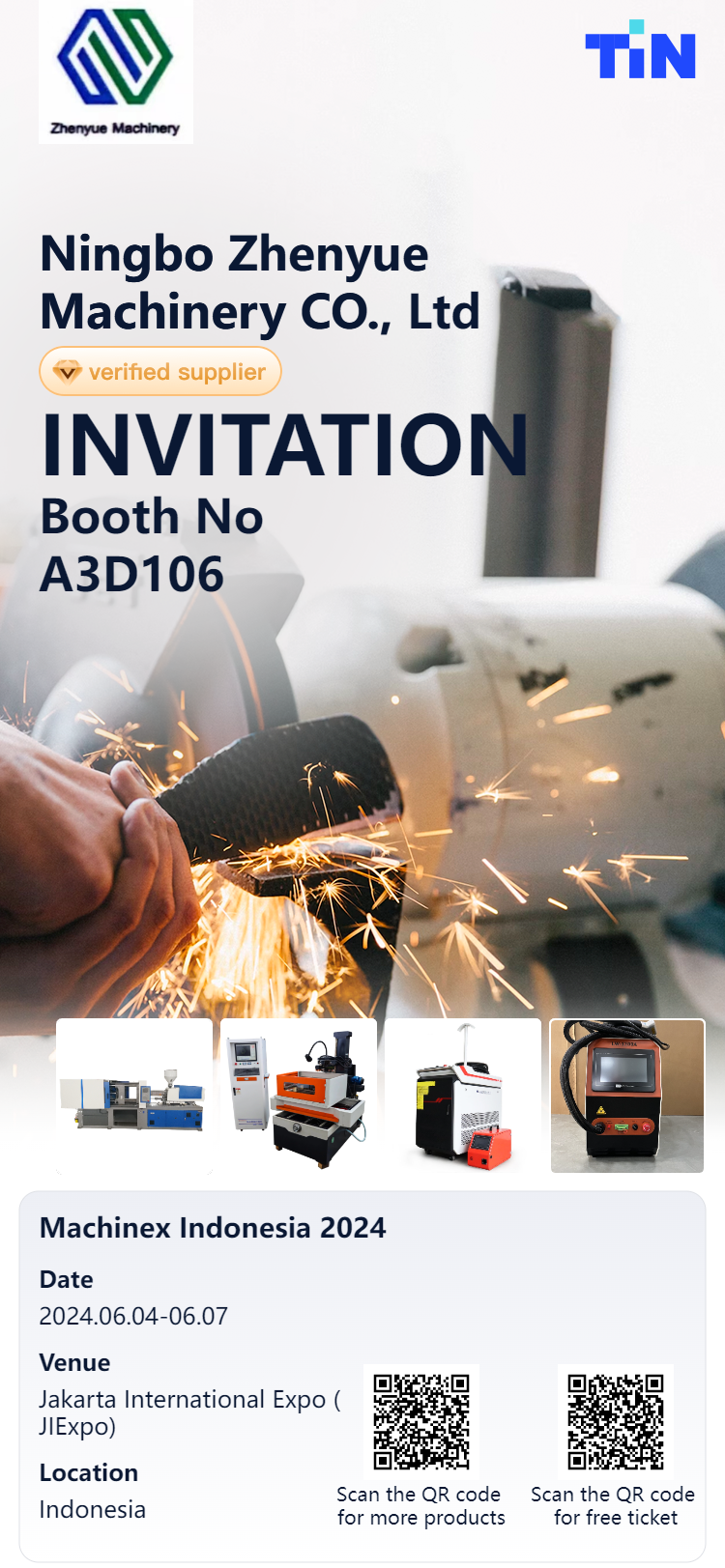 Ningbo Zhenyue proudly participated in the TIN2024 Indonesia Industrial Equipment and Parts Exhibition, showcasing its advanced wire cutting machines. The event took place from June 4 to June 7, 2024, at the prestigious Jakarta International Expo (JIExpo) in Jakarta, Indonesia.